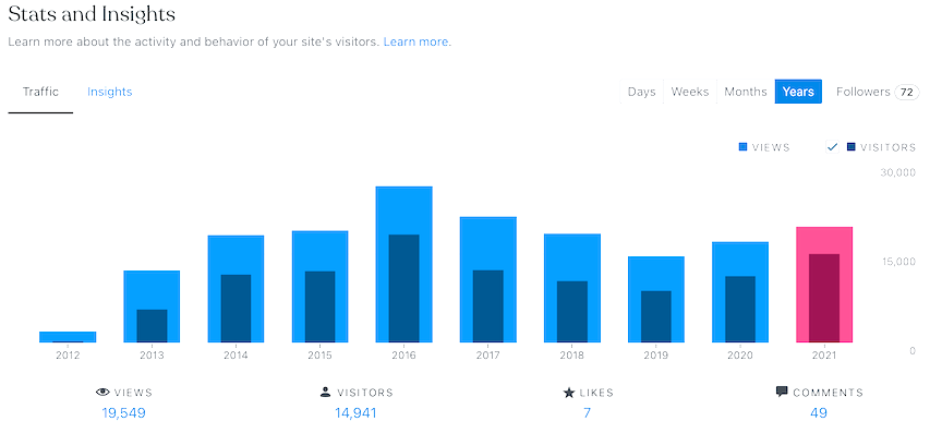 The 2021 review shows 14,941 readers visited here for 19,549 ‘views.’