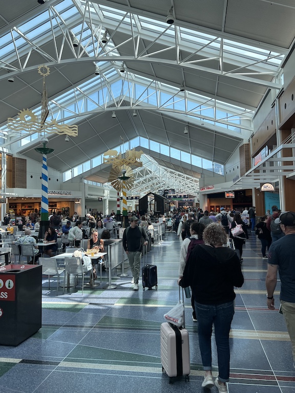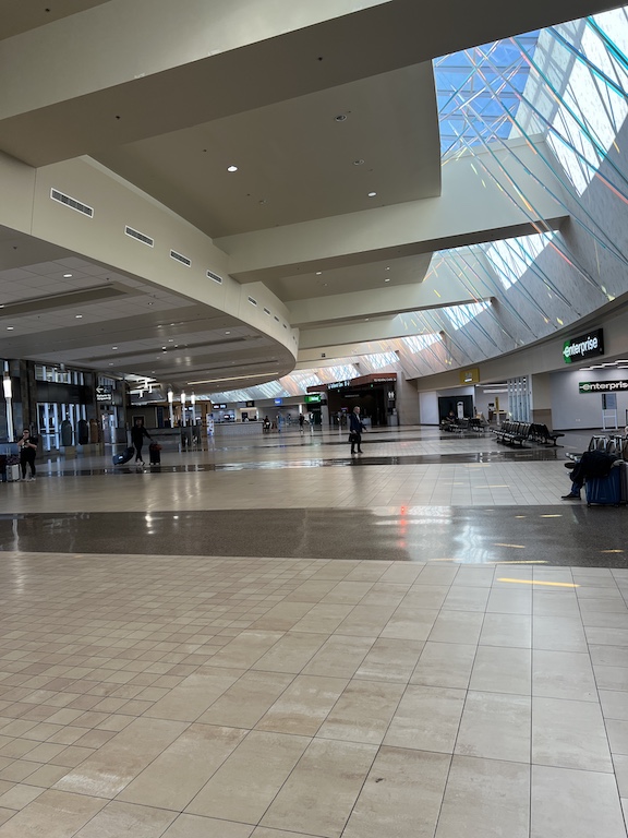Now you get off the plane, get the bags, and take the elevator up to the loading dock for a monorail to the church of the rental car.