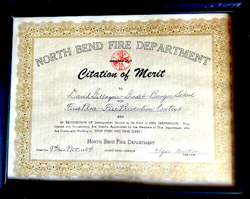 I found my award winning ‘Citation Of Merit’ from the North Bend Fire Department and hung it on my Wall of Fame.