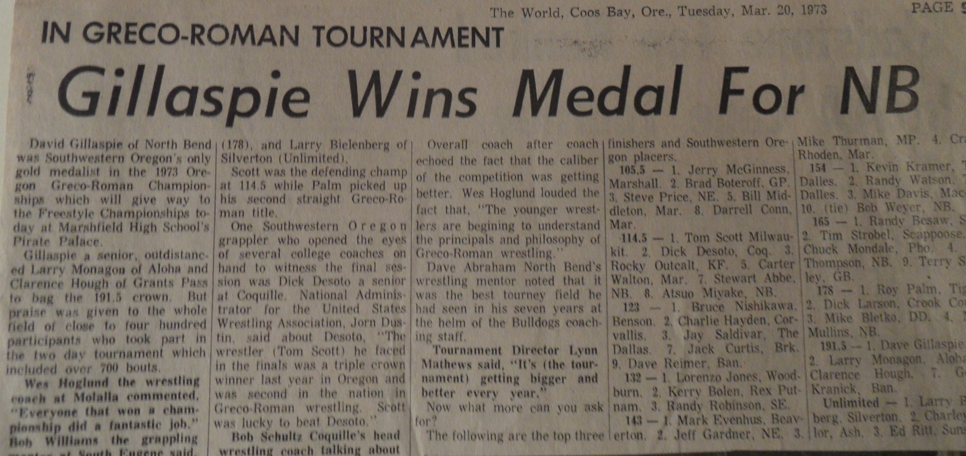 Greco-Roman Champions were a standard of excellence in North Bend High School sports.