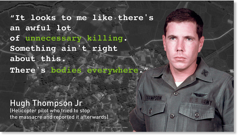 On 16 March 1968, in the official press briefing known as the “Five O’Clock Follies”, a mimeographed release included this passage: “In an action today, Americal Division forces killed 128 enemy near Quang Ngai City. Helicopter gunships and artillery missions supported the ground elements throughout the day.”