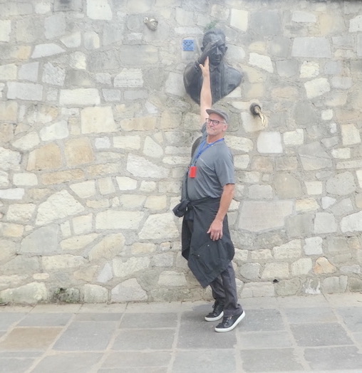 That’s me in Paris high-fiving the sculpture inspired by a story, Le Passe-muraille: