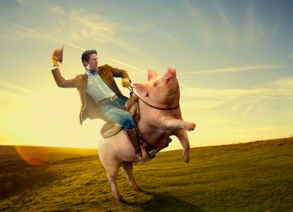 The pig drug the kids through the pig shit, crashed through the pen, and headed for the garden their mom had planted.
