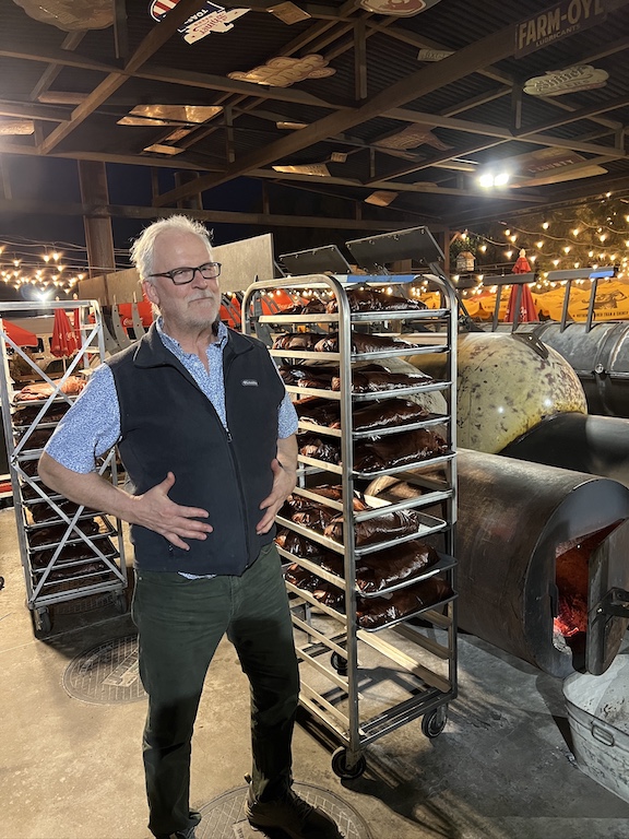 He’s been running the show for a few years with the huge smokers, about five of them going full blast.