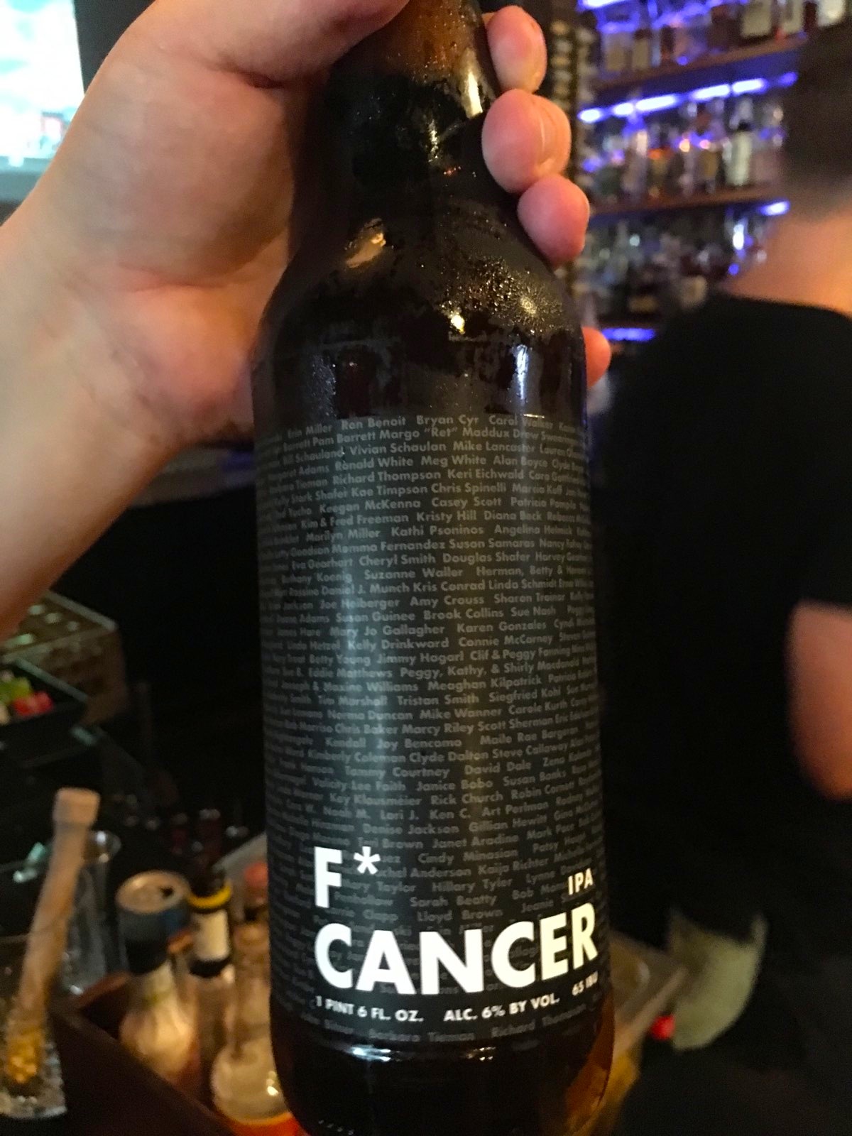 What I didn’t say was I hoped cancer research would result in better treatment with fewer side effects. If a brewery can spearhead cancer research, I’ll support the idea with a F* Cancer IPA.