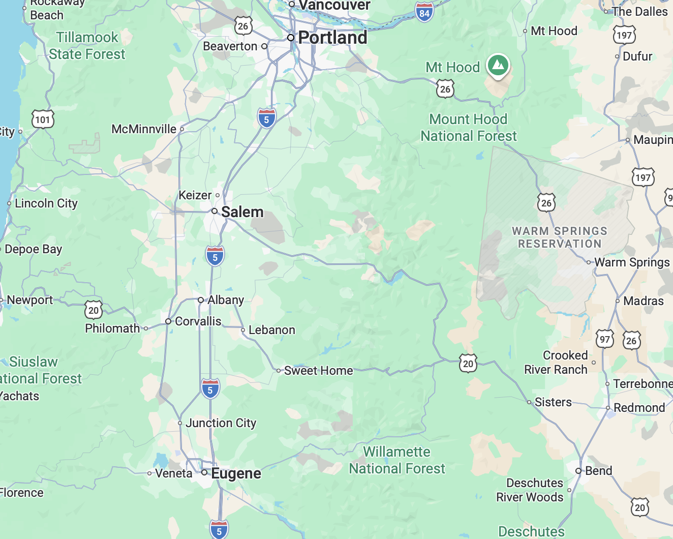 For savings, I’d leave from Portland on Hwy26, merge onto Hwy97 to Bend, and make a left turn on 20.