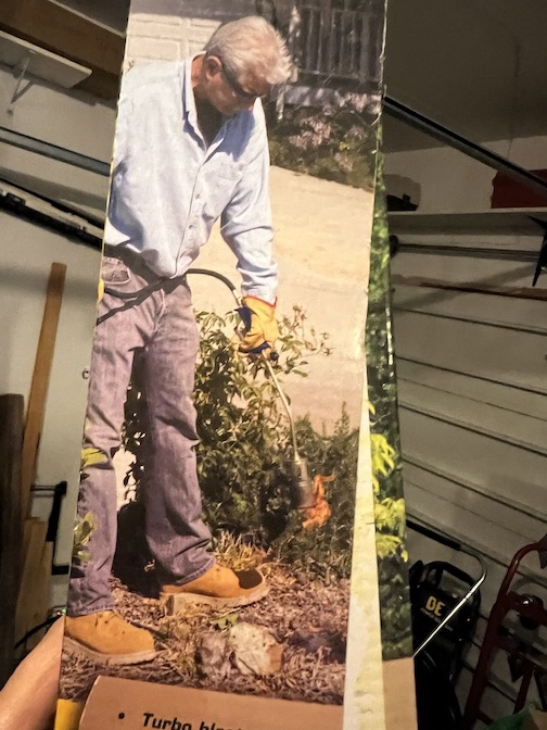 If you see a portable flamethrower and think like I did: ‘I’m going to burn all of the weeds out of the walkway.’