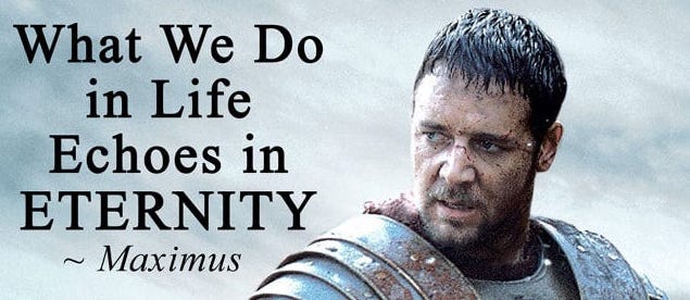 The things you do may not echo in eternity like they did in GLADIATOR, but the ripple effect of living your best life bumps up on others.