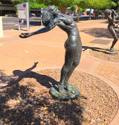 The walk-up on the block before included a series of statues of nude dancing bronze ladies.