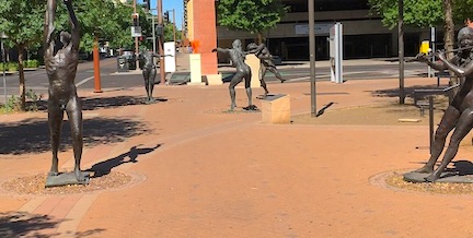 Not many flesh and blood people out and about, but nice statues.