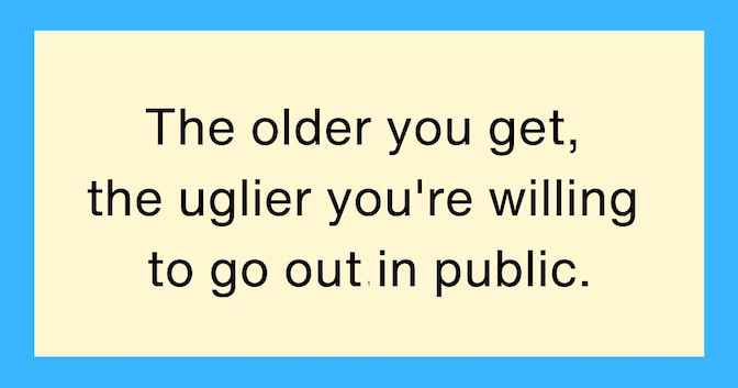 Where I live there’s a Safeway store between two ‘Over 55’ communities where you get people in baggy sweats and bedroom slippers, and others dressed for the theater opening night.