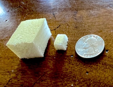 To the left is a chunk of styrofoam representing a tumor from last year.