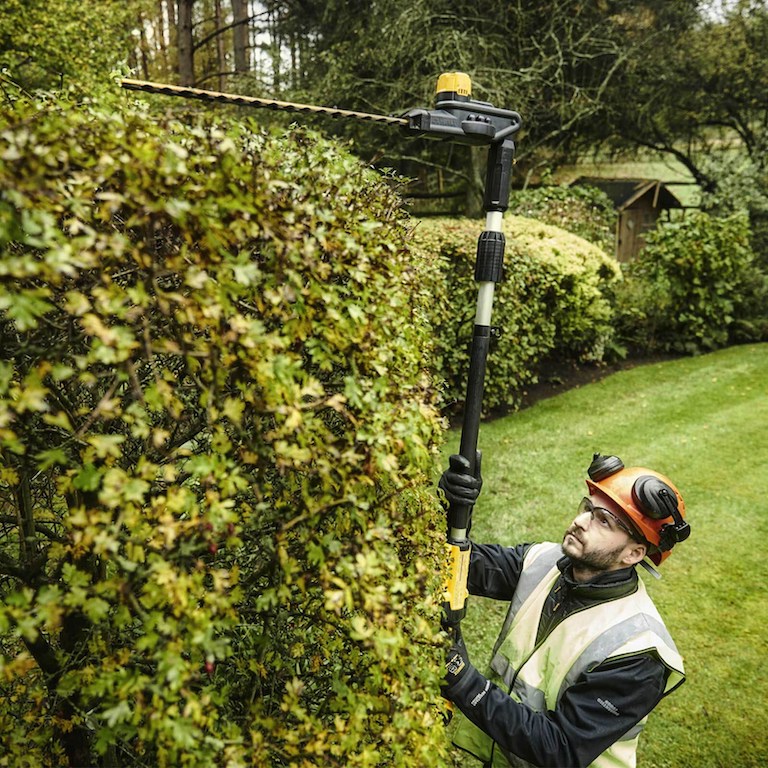 A hedge trimmer on a pole for high shrubbery?