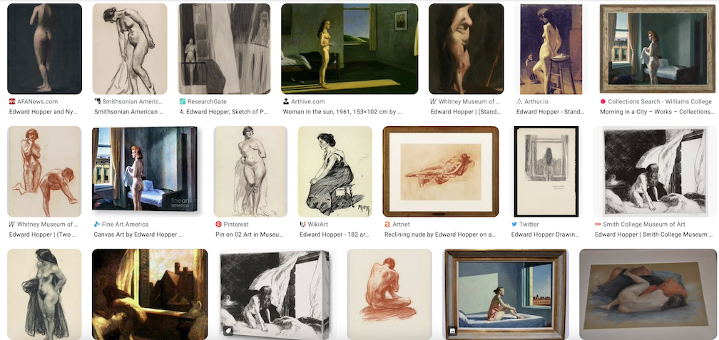 I look at Hopper paintings of nude women and want them dressed, his clothed ladies naked.