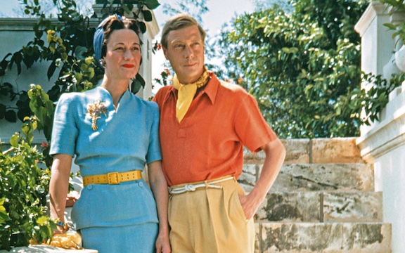 Wearing blue is the twice divorced woman who married the former king of England.