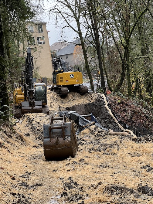 Kruger Creek is experiencing severe erosion in the Bull Mountain area.  This erosion is threatening slope stability near existing homes and the safety of sanitary, storm, park and private infrastructure located near the creek. The erosion has been so severe that the city purchased a house located on the eroding creek canyon on Southwest Gallin Court years ago.