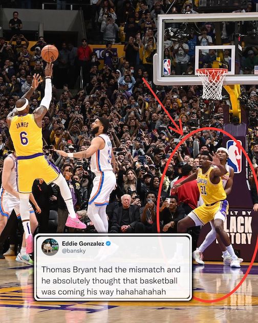 But, LeBron keeps shooting. And he scores.
