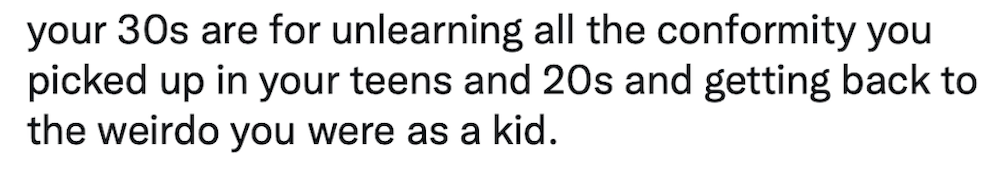 Did your thirties, if you’ve been there and done that, resemble anything about unlearning?