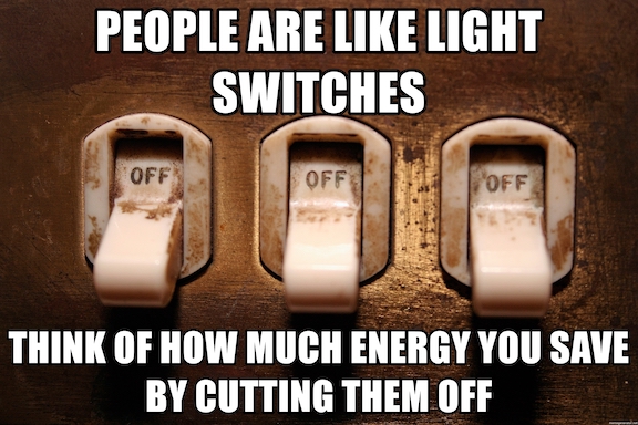 The life switch is always on. Feeling down? It’s on. Feeling in a dark mood? Still on.