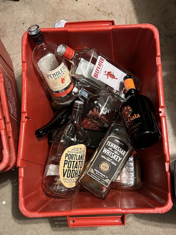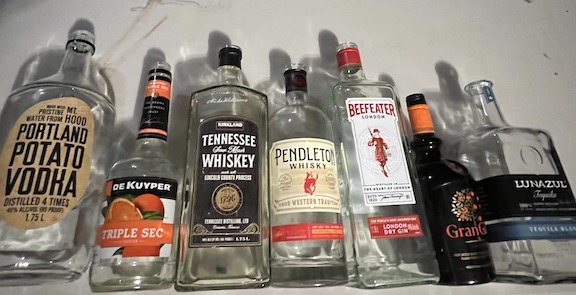 I wouldn’t knock on my door with this array of alcohol on display. Maybe I’ll turn them into yard-art.