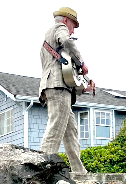 A man playing slide guitar in a slick suit felt like a Coen brothers break from reality.