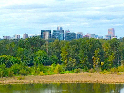 The skyline from Oaks Bottom in Sellwood shows Portland’s ambition and growth in between forest and clouds like a dream.