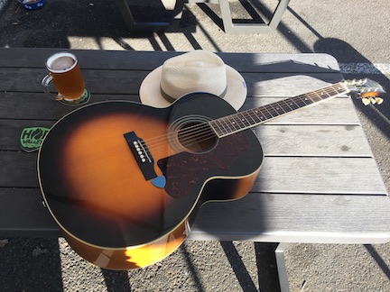 I rode the momentum to the tap house for a beer and played alone outside. A man a woman showed up at the tap house for a glass of wine. He said he was a ukulele man and had one in his car.