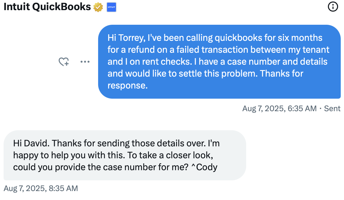 This morning, customer-facing Madison called me about the Intuit refund.