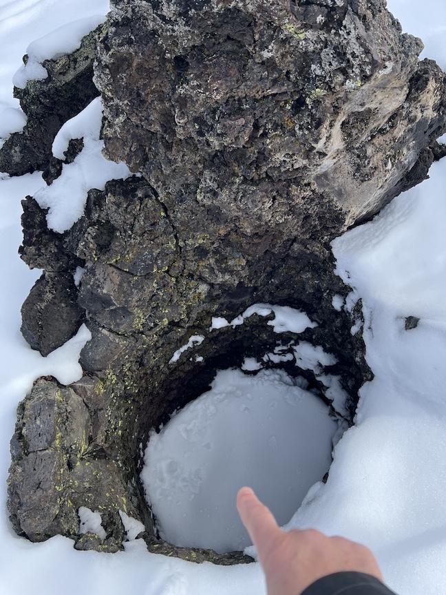 And a lava cast forest. Look, there’s a stump hole, let’s turn around.