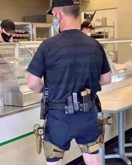 Since it isn’t a full figure image he might have two ankle holsters in case things go really bad.