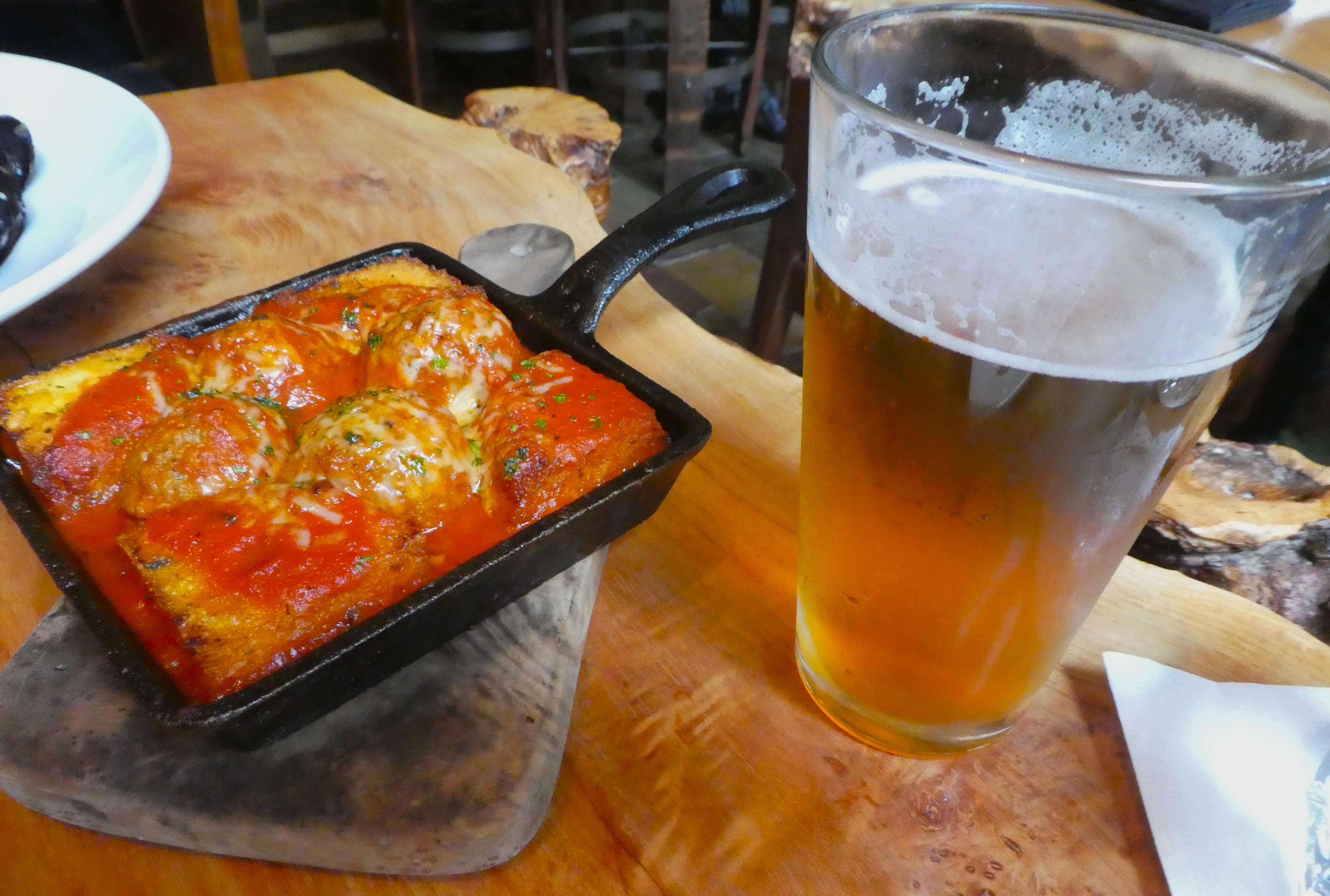The House Meatballs and polenta came out hot in cast iron, the ideal match to a cool IPA. Pan of the gods and nectar of the gods combined for an ageless moment.