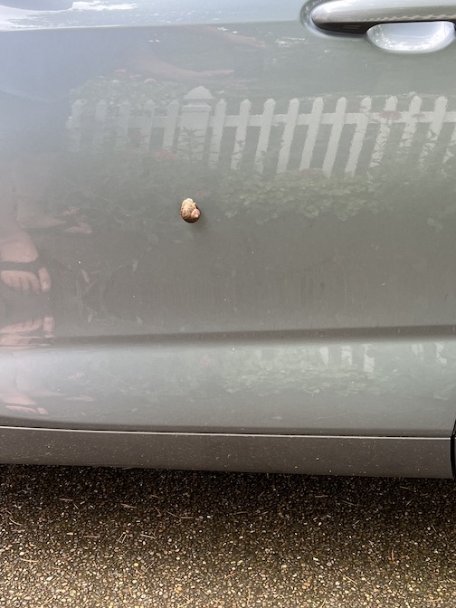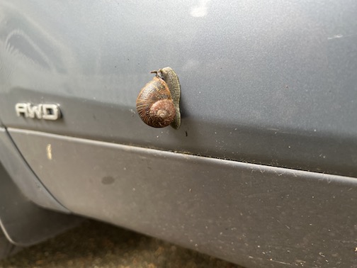 However a real nature boy could explain how a snail made it to the side of my car.