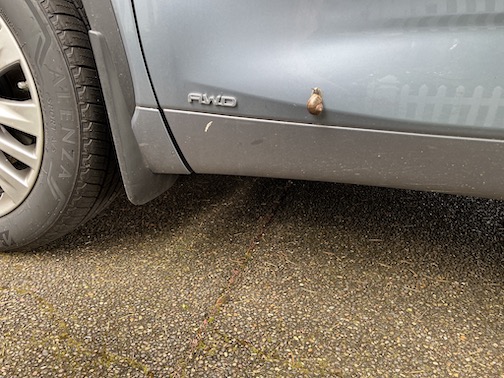 I took matters into my own hands. From the side of my car to the fence, where it fell off, I redirected this guy to a more productive life with a bright future.