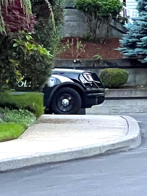 I say ‘near Portland’ because my zip code comes up Portland. I waited my turn in line at the police cruiser.