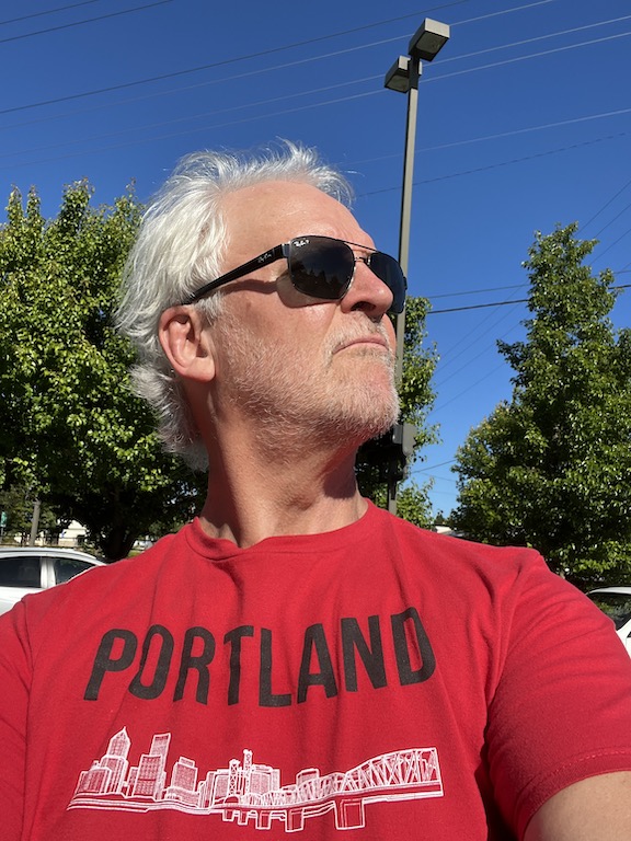 A statue of Vera Katz, bikes, runners, walkers, and the Blues Festival sending a message across the Willamette.