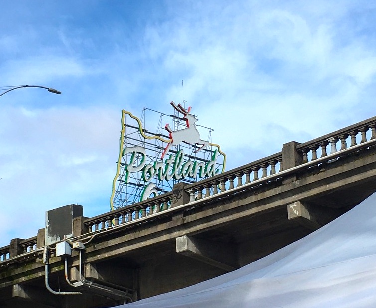 Below is the Burnside Bridge with the famous White Stag sign that has turned into a Portland icon. Burnside is the division street of the city with one side north, the other south. The Willamette River is the other coordinate; one side is east, the other west.