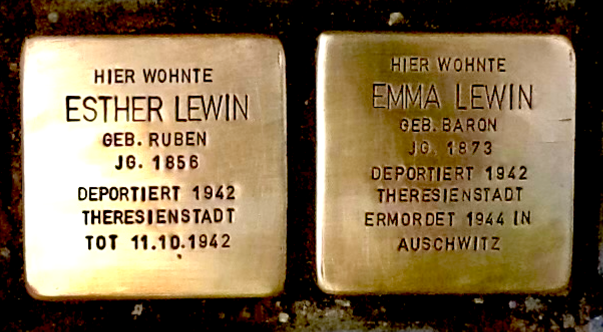 “I’m sending you a photo of the two “stones” that were planted in the asphalt in front of the building that my grandmother and great grandmother were relocated to by the nazis.