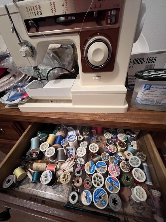 Nothing says ‘let’s go’ like a sewing machine and thread and needles on a desk.