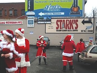Every Santa in the house looked happy. A rowdy howling happy with joyful overtones. The red suits kept it jolly. The mood never wavered from one venue to the next, but it did swerve.