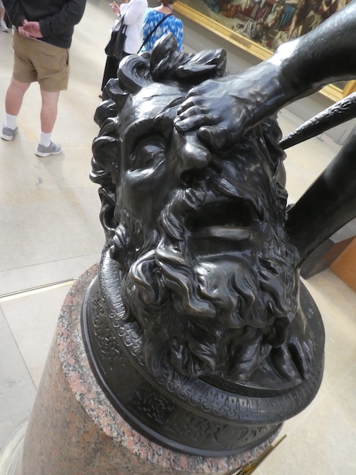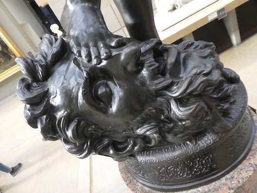The top image shows David speaking truth to power, then stepping on its head with a bare foot.
