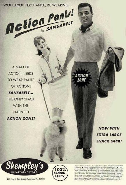 This ad came from a time when forty was the new twenty, except the youths were getting their rags from the surplus store.