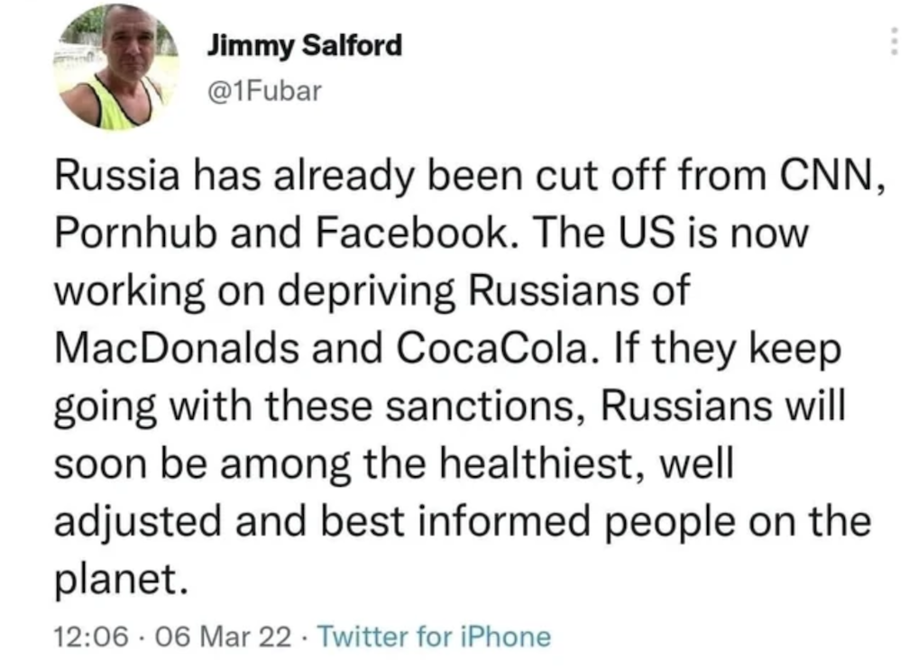 The jeans will fit Putin, he doesn’t need Ukraine to fill out the front. It’s a relaxed fit, not an invade-the-neighbors fit.