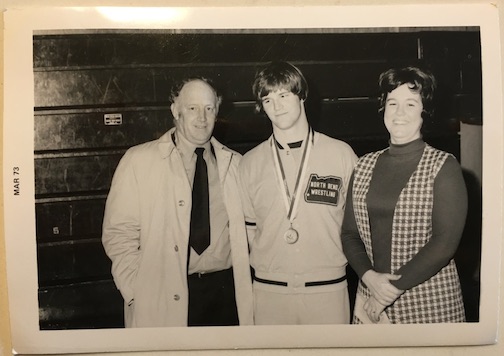 But it was just a mom with father and son up in the stands for a wrestling match in Marshfield High School one March day in 1973.