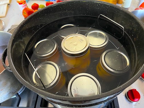 Raw pack – Fill jars with raw fruit, cut side down, and add hot water, juice, or syrup, leaving ½-inch headspace.