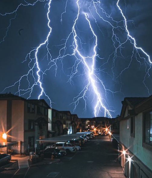 It’s sideways rain and lightning.